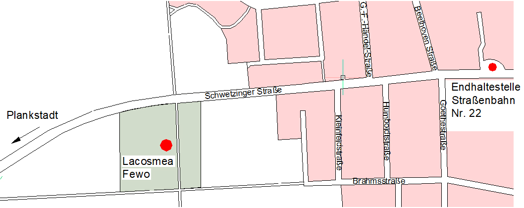 - Haltestelle ca. 400 m entfernt, direkte Verbindung nach Heidelberg und Schwetzingen